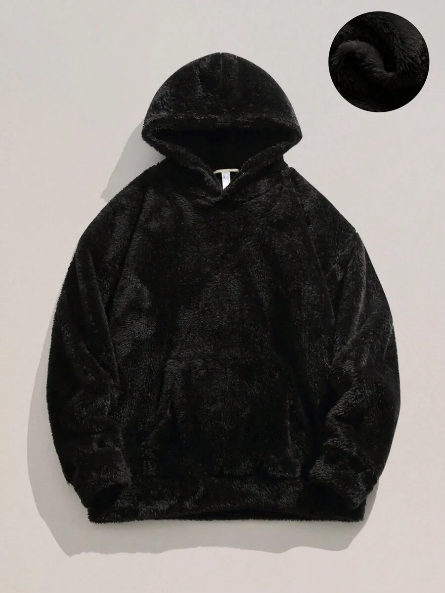 Wrap yourself in next-level comfort with this black fluffy hoodie, perfect for cozy streetwear lovers. Made from ultra-soft flannelette fleece, this plain pullover hoodie features a minimal aesthetic with subtle drawstring detail, a kangaroo pocket, and relaxed drop shoulders. The loose fit and slight stretch make it perfect for layering or lounging, capturing that oversized, soft-core Japanese casual fashion vibe.
