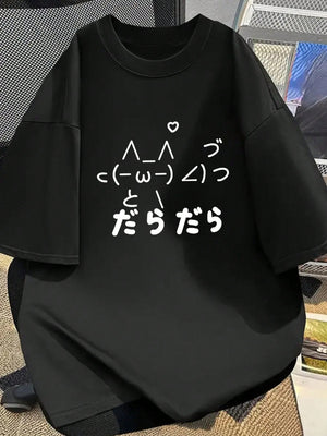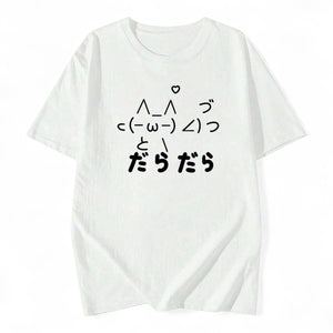 Add a dose of chill to your streetwear rotation with this Kawaii Lazy Cat Japanese T-Shirt, inspired by Tokyo’s relaxed and quirky vibe. Featuring an adorable ASCII-style cat and the Japanese phrase “だらだら” (daradara – meaning lazy or laid-back), this tee is all about embracing slow days in style.