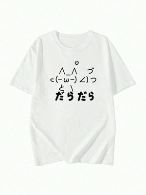 Kawaii Lazy Cat Japanese Streetwear T-Shirt – Loose Fit, 100% Cotton