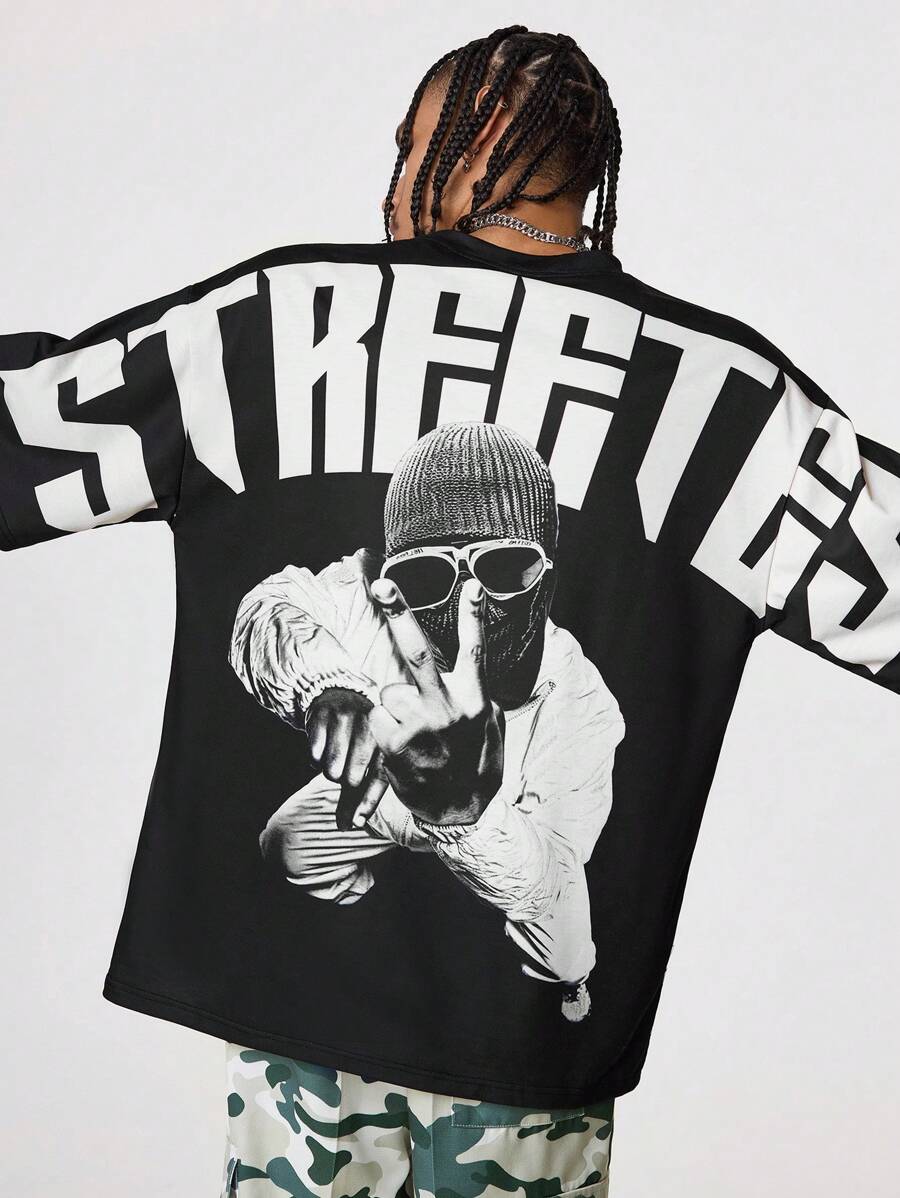 Make a statement with this Japanese streetwear oversized tee, featuring a bold street figure graphic with large block lettering across the back. The drop shoulder cut, loose fit, and round neckline bring a relaxed Harajuku-inspired silhouette, perfect for Tokyo and punk street fashion.