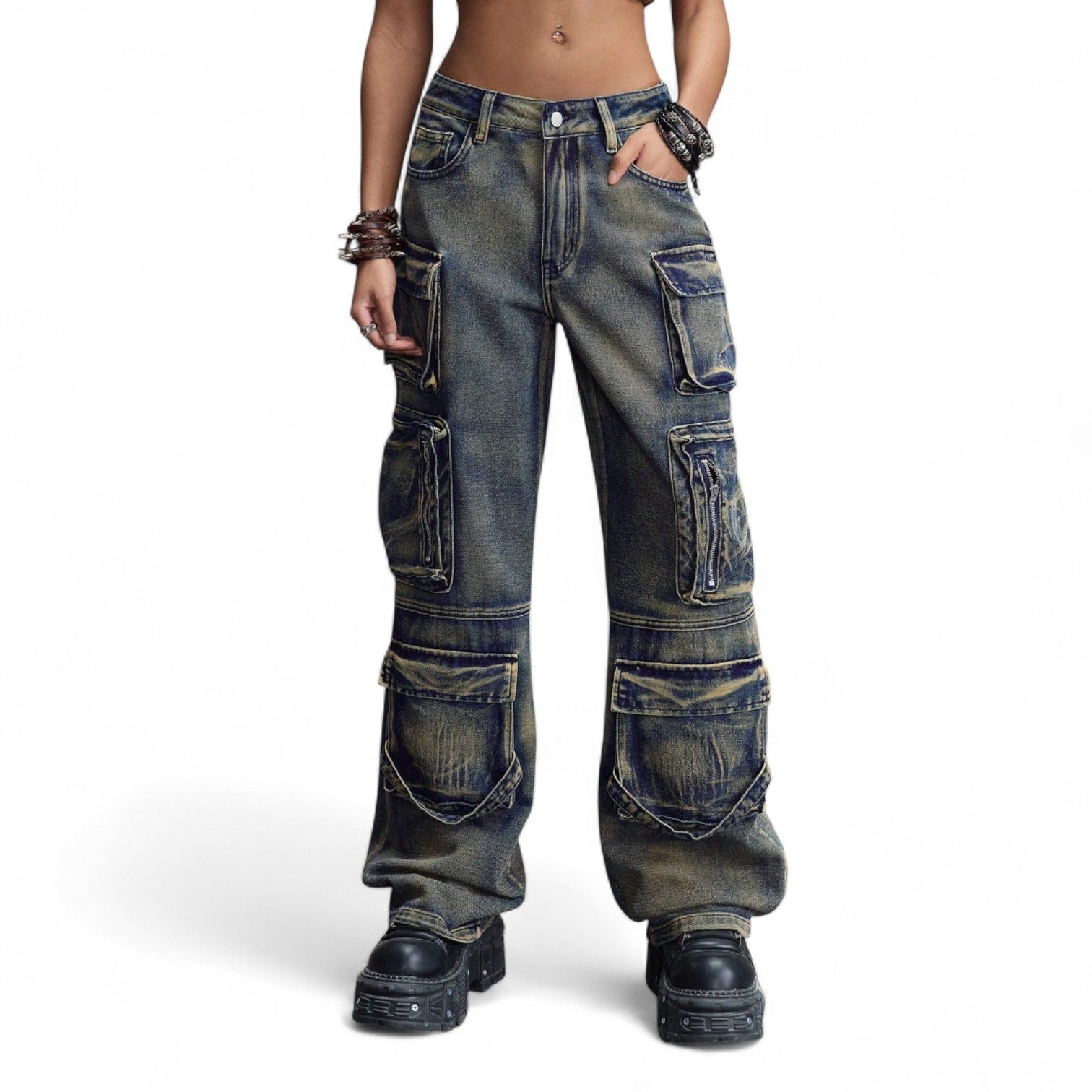 Step into bold fashion with these teal blue cargo denim pants, a statement piece for lovers of Y2K utility style. Featuring an extra-wide leg, multiple oversized pockets, and a flattering low-rise waist, these jeans redefine modern streetwear with a retro edge.