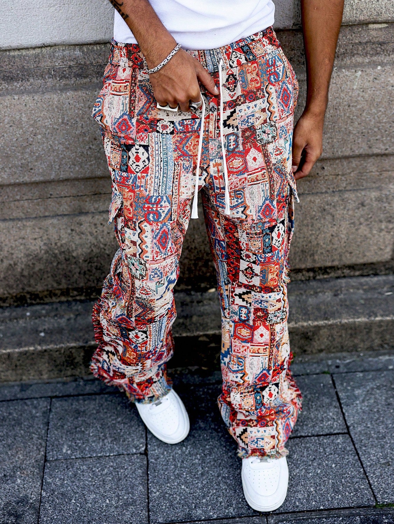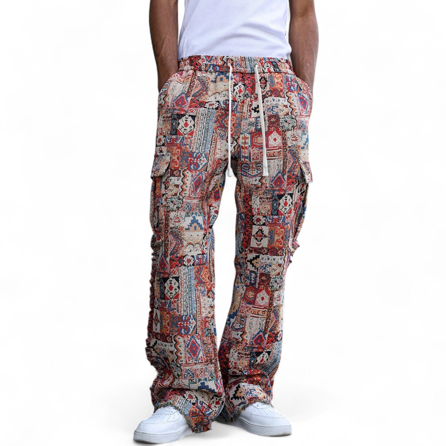 Designed with a paperbag-style drawstring waist, practical pockets, and a natural mid-rise fit, they bring texture and color to any streetwear outfit. Whether you're heading to a festival or styling urban casual looks, these pants demand attention.