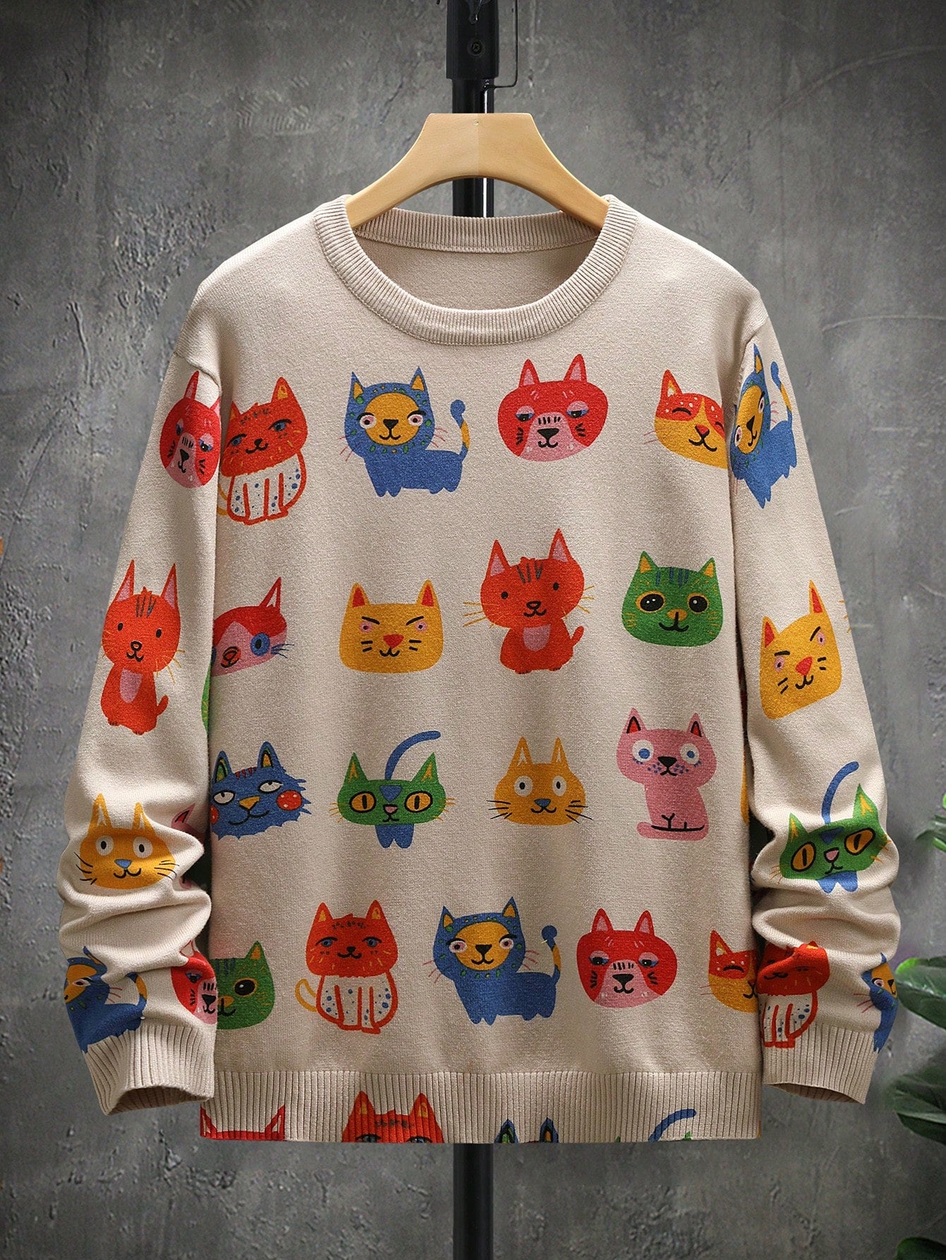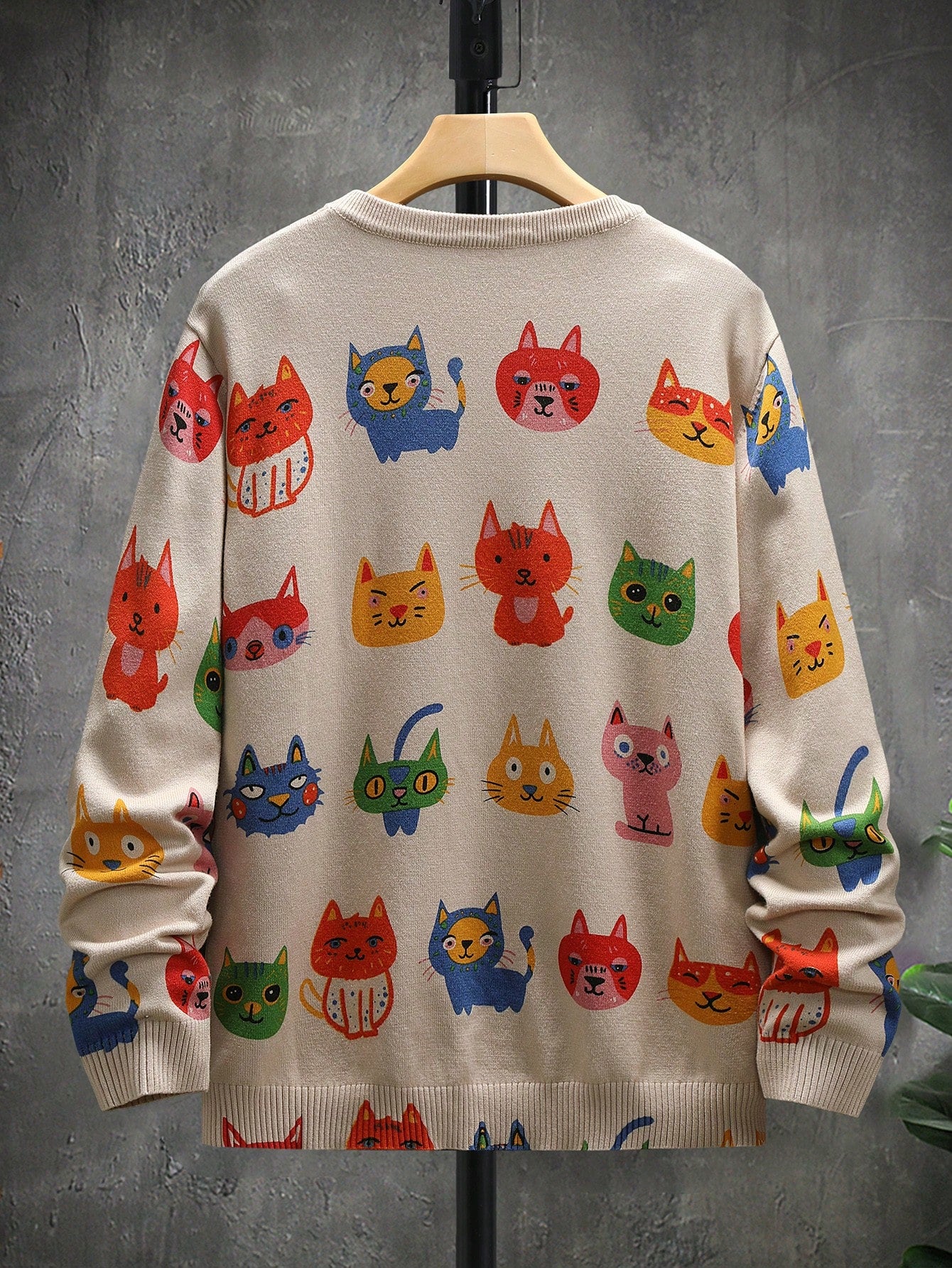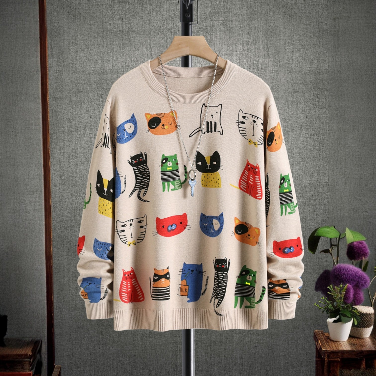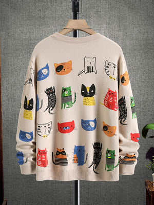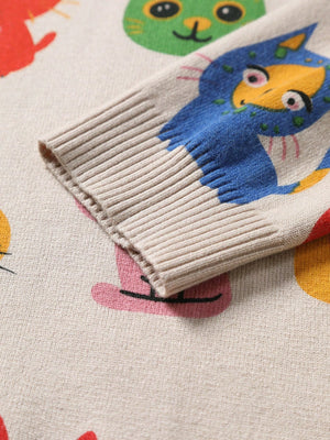 This adorable multicolor cat sweater brings playfulness and charm to your fall wardrobe. Featuring an all-over cartoon animal pattern, this pullover blends kawaii fashion with cozy Japanese-inspired streetwear. Perfect for cat lovers and pastel-core fashion fans alike!