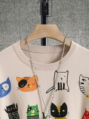 Whether you're styling it with denim, a pleated skirt, or layered over a collared shirt, this cat-print pullover adds instant fun to your outfit.